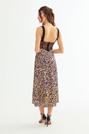 RENNA Cheetah Pattern Lace Detailed Midi Dress