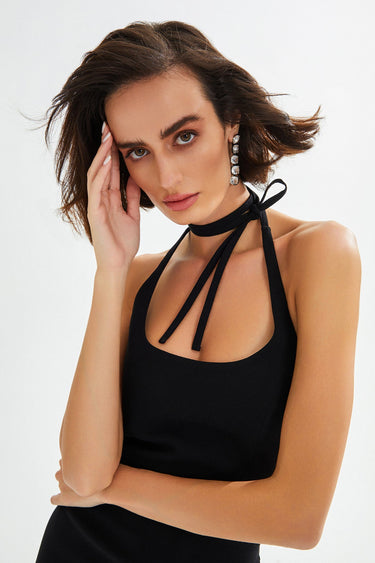 BRESLIN Halter Neck Midi Black Dress